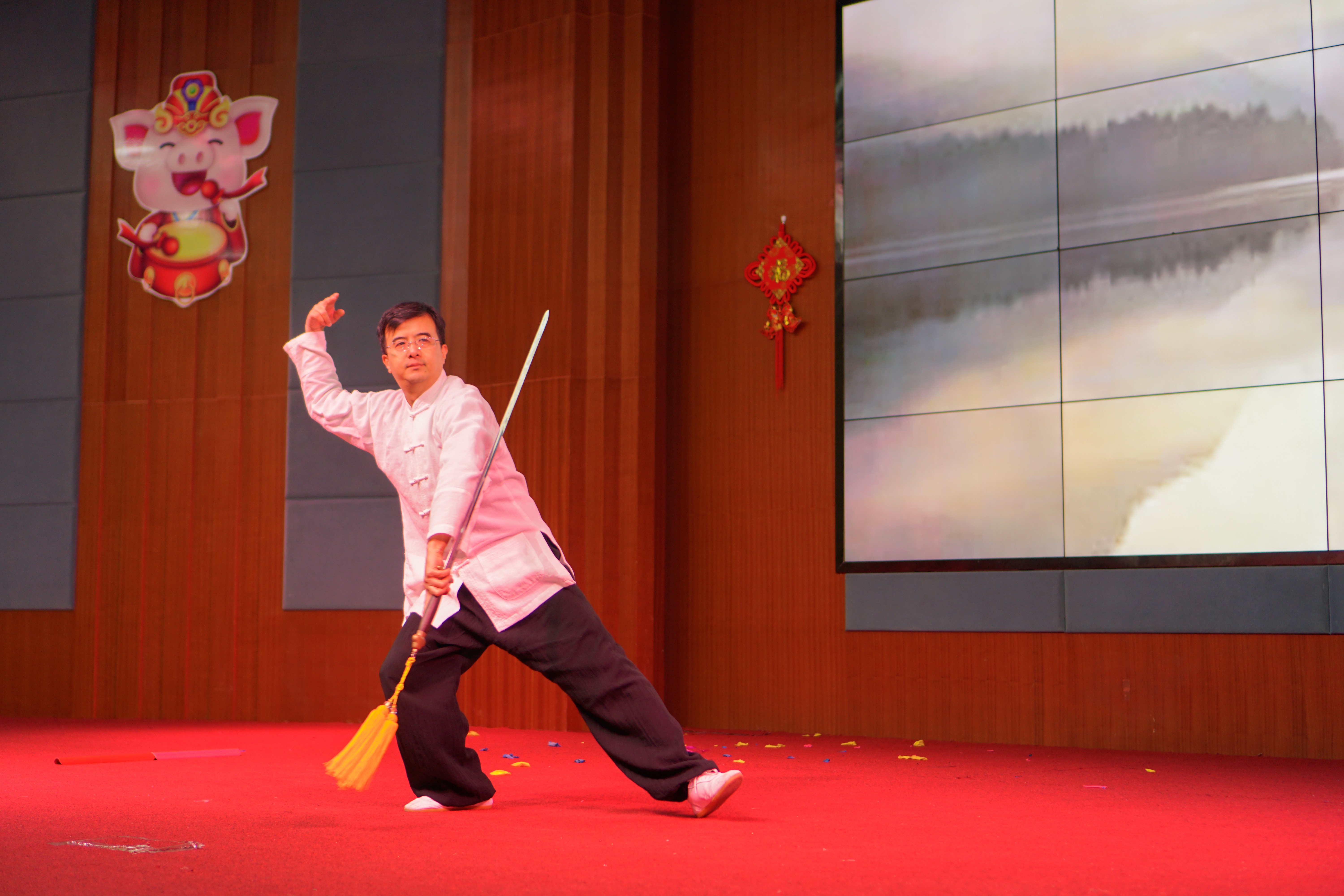 最后,茶话会进入联欢环节。在五个趣味游戏“踩气球”、“珠行万里”、“袋鼠跳跳跳”、“挤眉弄眼”、“新年新声”中大家热情参与;在节目“三句半”、“舞剑”、“一曲‘朋友’”中学院老师们尽展才艺,联欢一次又一次在老师们的才艺展示中被推向高潮。