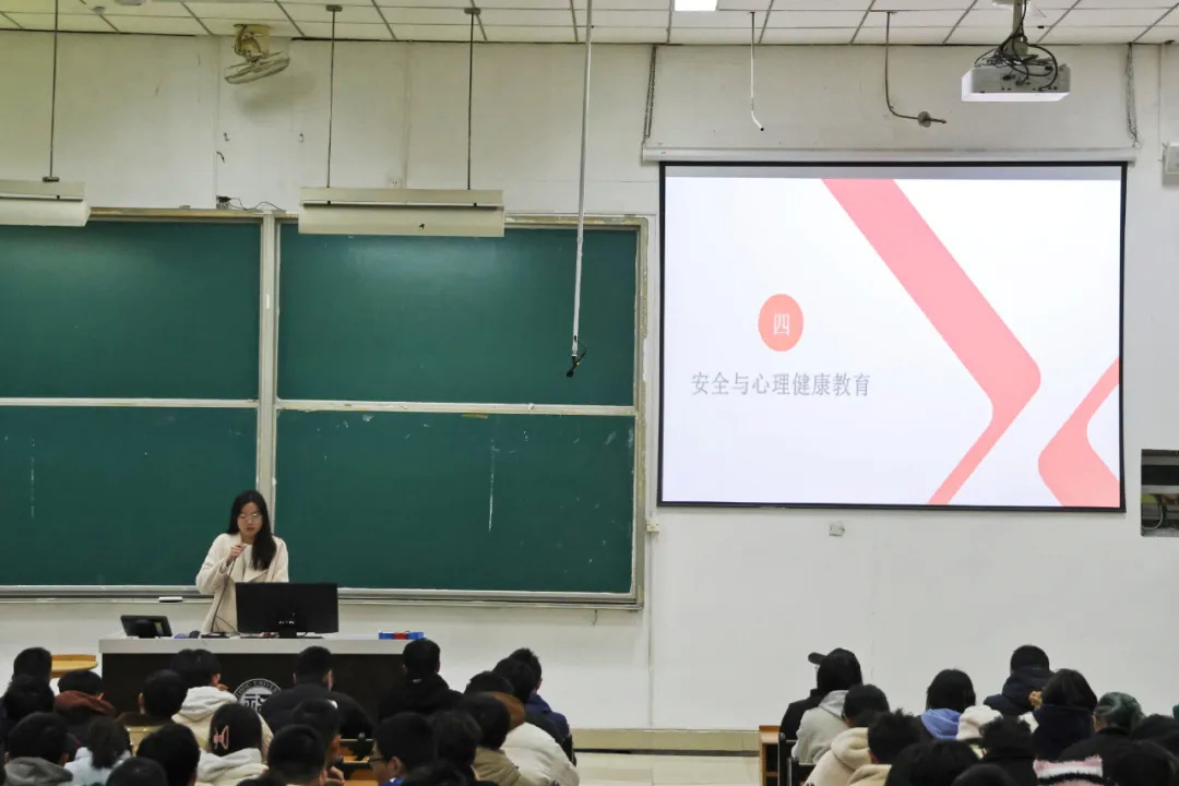 辅导员就上学期年级总体学习情况进行了说明,通过近三年数据对比等深入分析了现存的问题,表示全体同学应明确当前学习任务与目标,并提醒了补考时间,重申考试纪律。