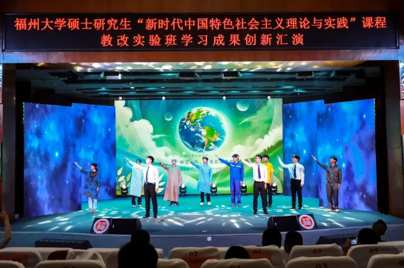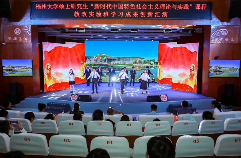 汇演活动由德赢ac米兰官方合作vwin党委宣传部、研究生院、马克思主义学院、德赢官网联合主办,由马克思主义学院“新时代中国特色社会主义理论与实践”课程组和“习近平新时代中国特色社会主义思想概论”教研部联合承办。依托德赢ac米兰官方合作vwin马克思主义学院首创、十年来不断完善的“四融双动”教改法,呈现了这场汇演活动。“四融双动”教改法指的是,思政课日常教学中,在教师的指导下,要求学生以团队为单位,自主开展课题研究,并且自编、自导、自演,将“理论、实际、实践、艺术”四大元素有机融合,使学生受到“理性”和“感性”的双重触动。