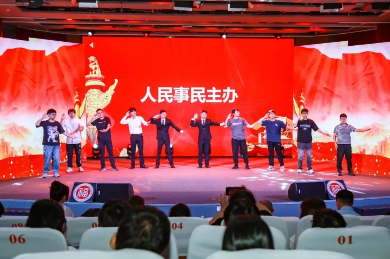 本期教改实验班的197位德赢官网硕士研究生悉数上场表演,汇演分两场举办,总长约8个小时。每个节目都以“理论阐析+情景剧演绎+主题歌集体演唱+主题口号宣誓”的形式呈现,以青春的视角、青春的表达和青春的担当,让党的创新理论看得懂、听得进、深入心,生动展现机械学子理论学习成效并努力将其转化为青春奋斗的实践伟力!