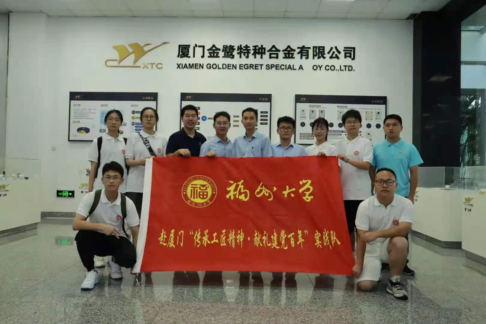7月27号下午,为深入贯彻习近平新时代中国特色社会主义,弘扬工匠精神,并了解企业对人才的需求,加强职业认知与就业意识,德赢ac米兰官方合作vwin德赢官网 “传承工匠精神·献礼建党百年”实践队在辅导员陈伯豪老师的带领下,前往厦门金鹭特种合金有限公司参观调研。