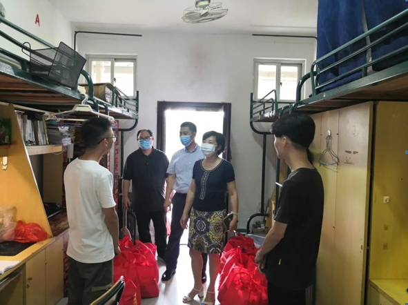 院领导在学生公寓与返校的同学们进行交流,详细问候了同学们的返程过程、口罩等防疫物资准备情况以及返校后的生活学习状况,深入了解同学们返校后学习和生活上的需求及对学院工作的建议,同时细心叮嘱同学们在校期间要严格遵守学校防疫防控各项规定,注意寝室卫生,做好个人防护,保持良好的学习生活规律,合理安排作息时间,提高自身免疫力。学院还为每一位返校学子准备了一份“复学”爱心大礼包,给予学生温暖和关怀。