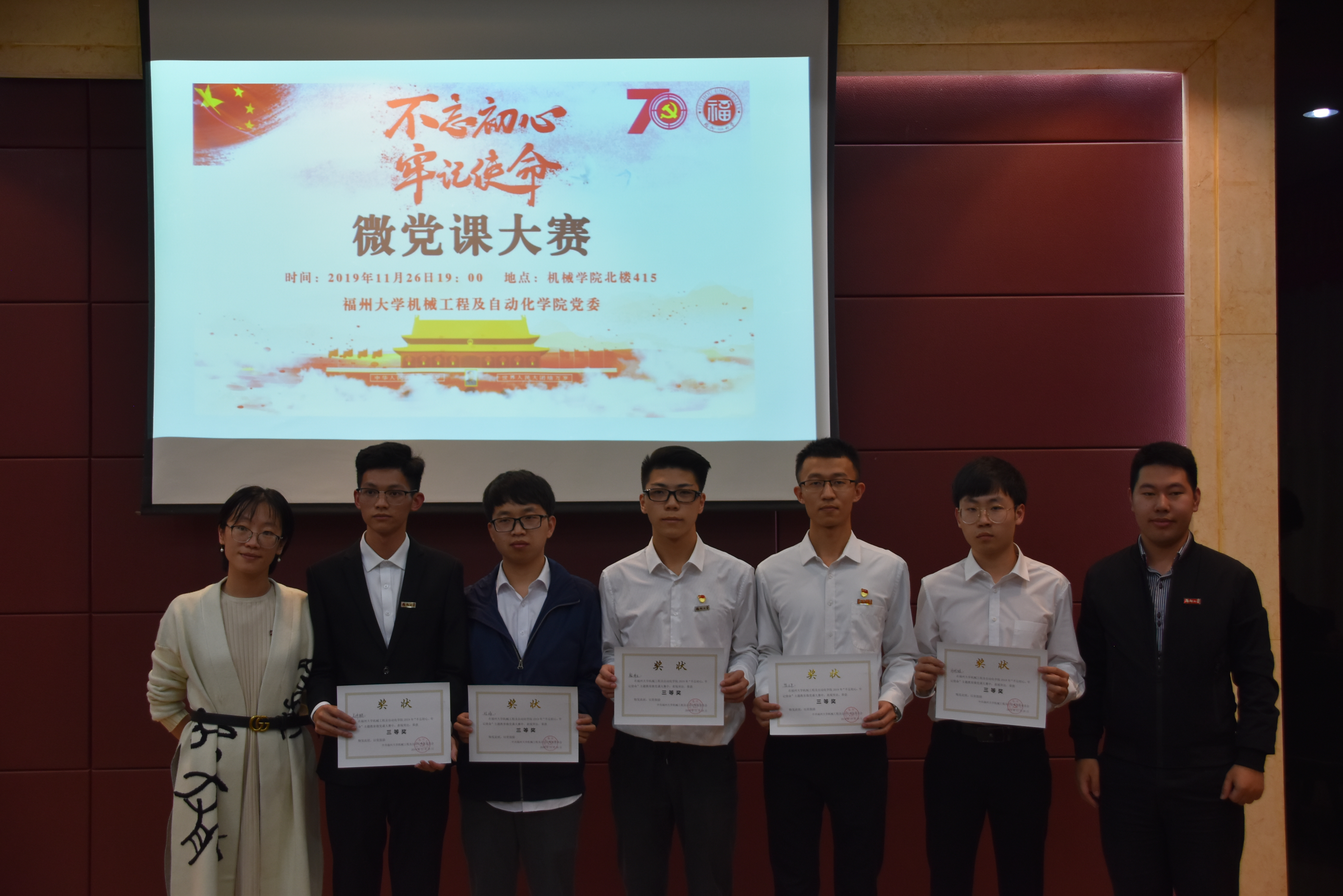11月26日,机械工程自动化学院第一届“不忘初心、牢记使命”微党课大赛在机南401成功举办。电气学院党办主任衷欢老师、电气学院组织员胡培杰老师、德赢官网党办主任陈劼老师、德赢官网组织员刘旭莹老师、德赢官网17级辅导员陈伯豪老师以及德赢官网分党校第十九期入党积极分子培训班成员参加本次大赛。