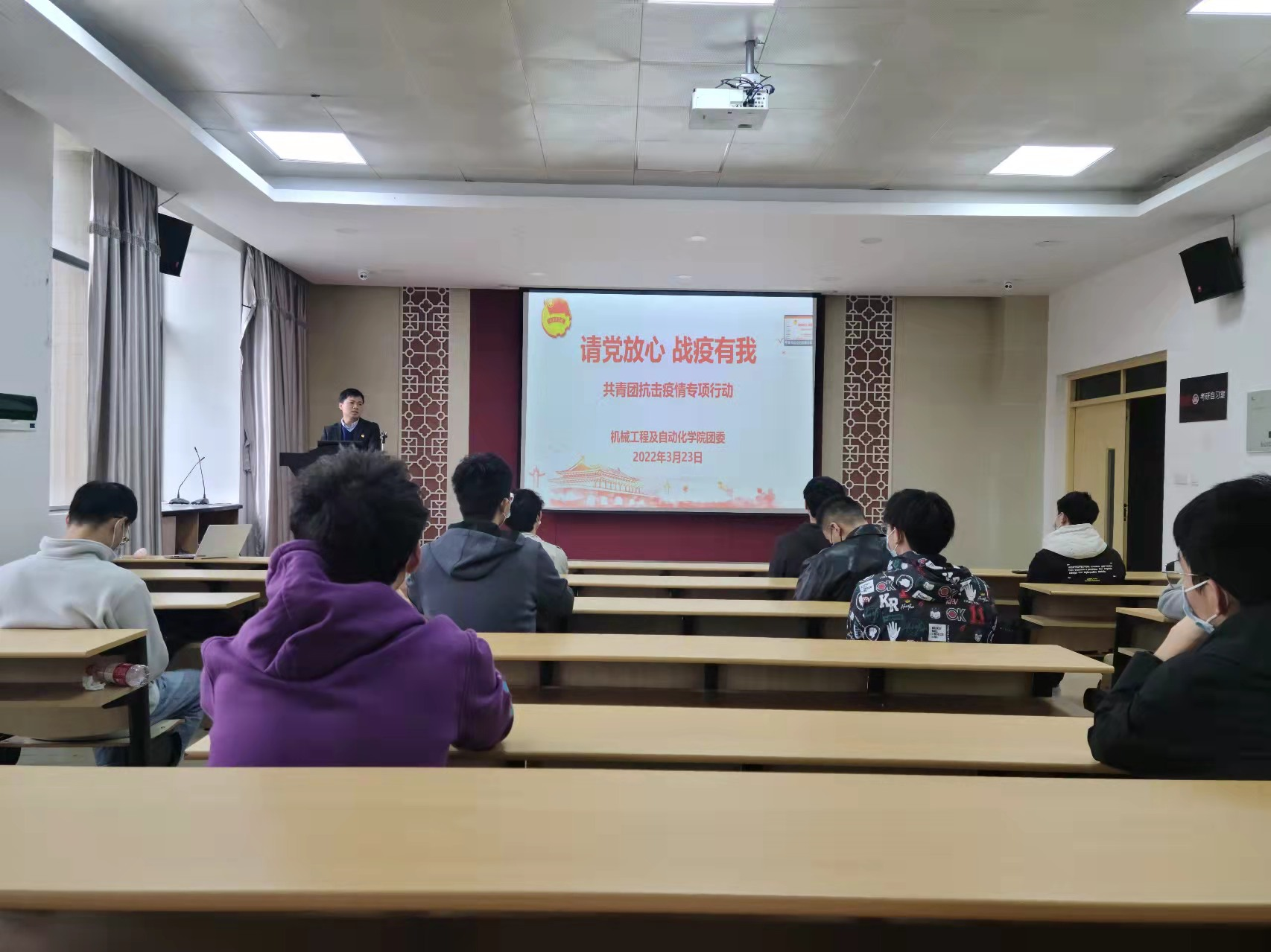 本次会议通过线上与线下相结合的形式,面向全院团支部书记,院团委副书记林成金老师讲授抗疫思政课,具体分析当前疫情防控严峻形势,解读学校最新防疫政策,号召全体团支部书记及全体团员扛起疫情防控责任,起好带头作用,严格落实学校各项防疫举措。