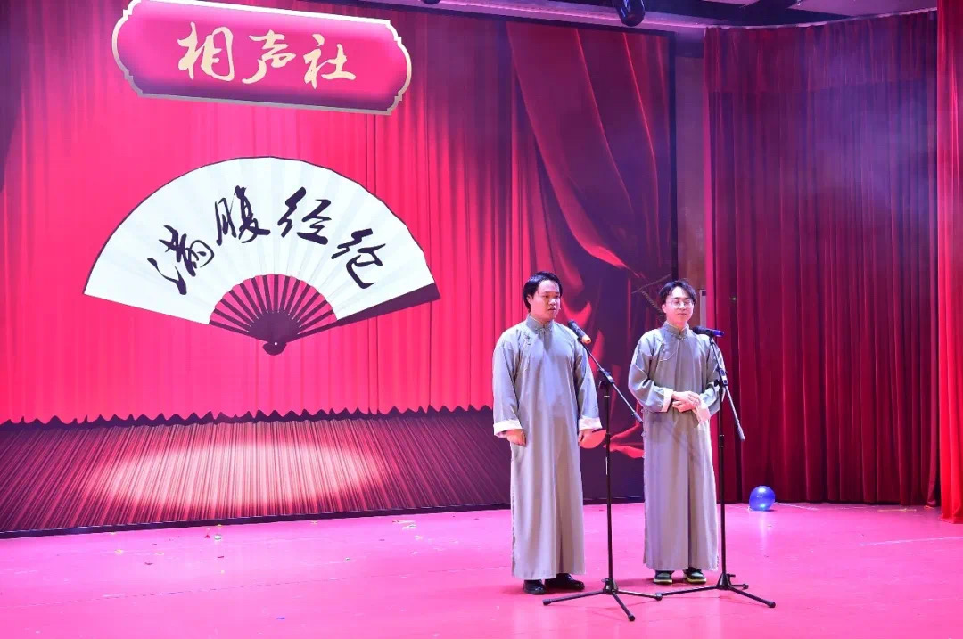 相声同样是晚会必不可少的。由胡宇航和潘逸晖同学合作带来的《满腹经纶》,用自身的舞台张力赢得了台下同学的欢声笑语和掌声,讽刺了如今部分人读书学习囫囵吞枣所表现出的“满腹经纶”是多么啼笑皆非。欢乐的节目过后也值得我们深思其中传递的意义。