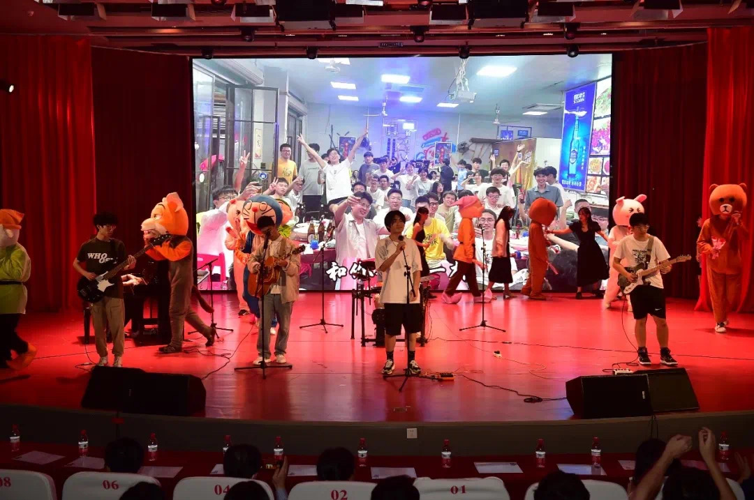 晚会正式开始,随着灯光聚焦到舞台的中央,来自材控班级的《离开地球表面》+《干杯》将整个舞台直接点燃,全场气氛跟着主唱一般,越跳越高把地球甩掉,这也让我们对接下来的晚会节目更加期待。