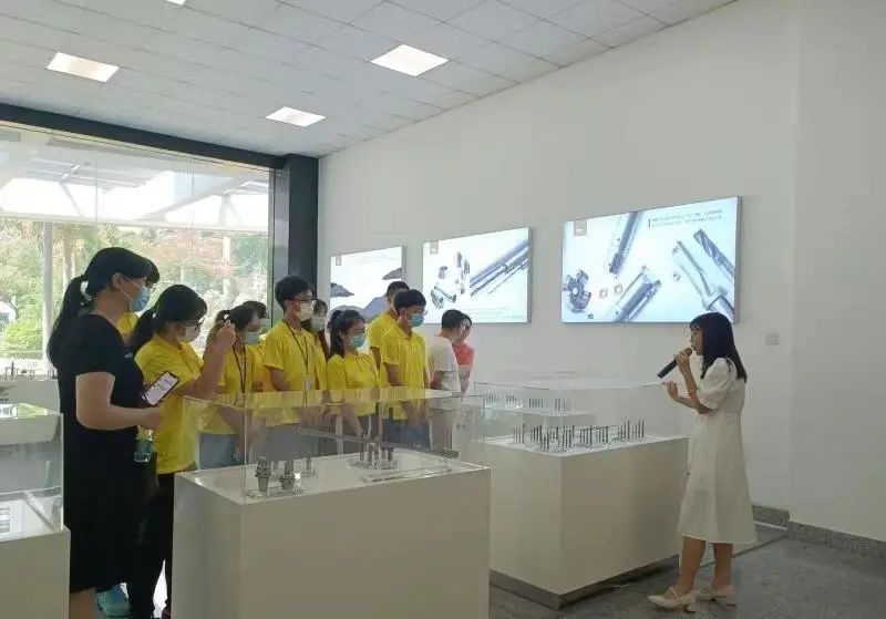 首先,德赢官网各领导与实践队成员在工作人员的带领下参观了厦门金鹭科技展厅和生产车间。叶书记一行先后前往整硬刀具、可转位刀具、PCB微型刀具车间参观,近距离观看生产设备,深入了解生产工艺、制造流程和现场管理。