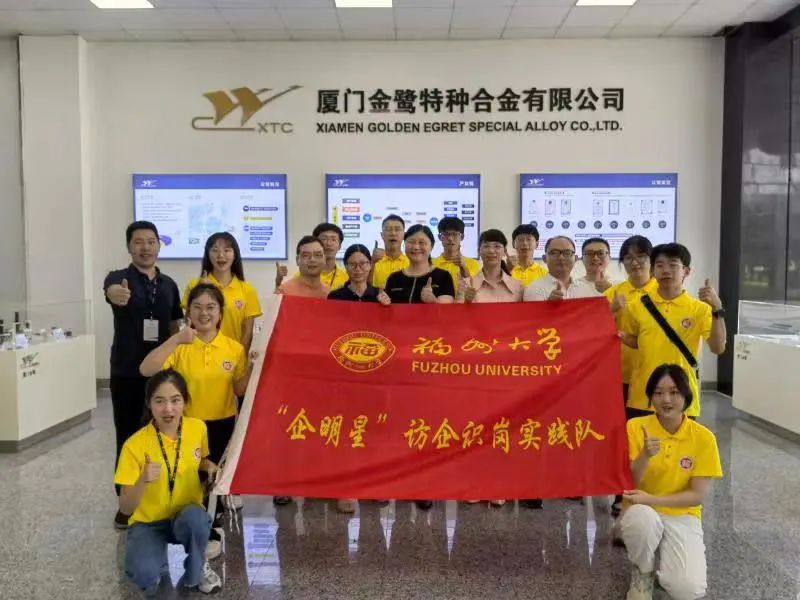 7月21日,德赢ac米兰官方合作vwin党委副书记(主持工作)叶青带队前往厦门金鹭特种合金有限公司参观调研,并举行德赢ac米兰官方合作vwin大学生暑期社会实践基地共建揭牌仪式。院长助理、车辆系支部书记任志英教授、林谢昭副教授、江星莹老师、赖福强老师以及“企明星”访企识岗实践队同行,厦门金鹭特种合金有限公司副总经理邹建平、切削工具事业部制造总监代平、人力资源总监陈素艺,人力资源经理刘加王以及公司德赢ac米兰官方合作vwin德赢官网院友热情地接待了实践队一行。