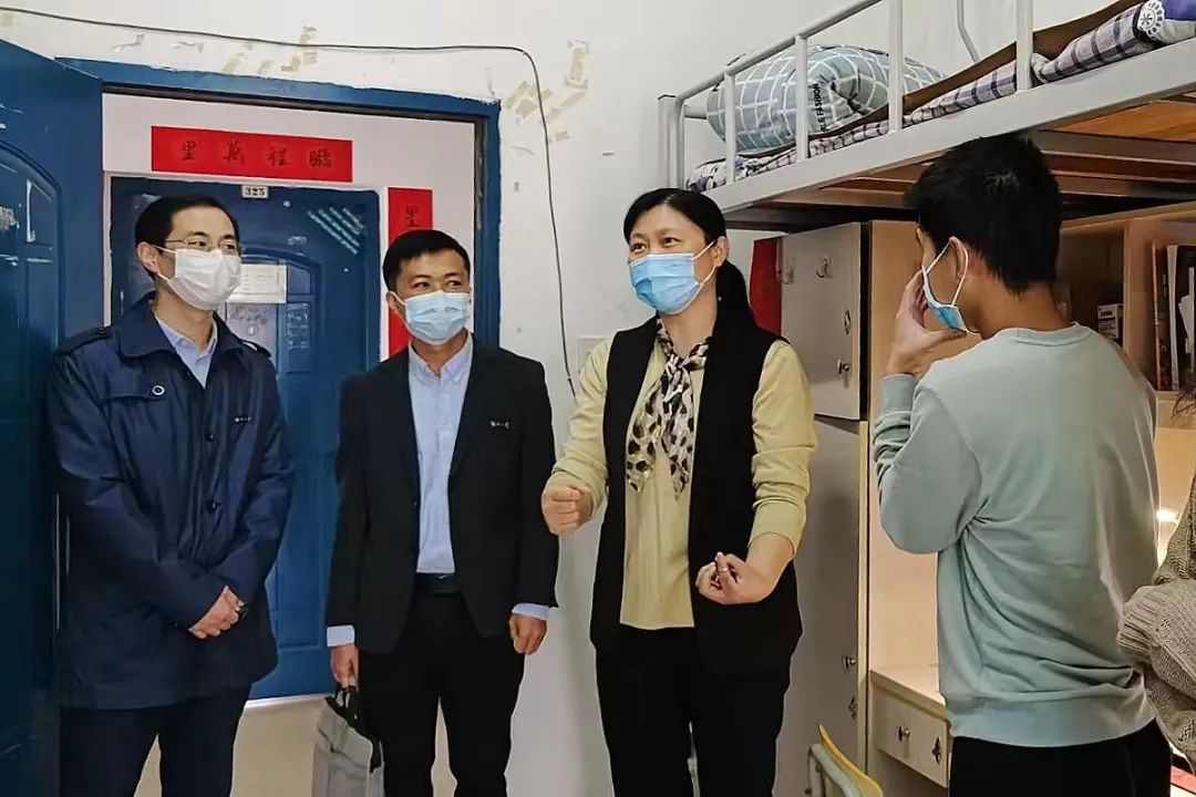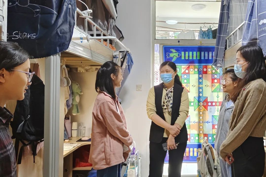 11月5日上午,德赢官网党委副书记(主持工作)叶青、党委副书记兼纪委书记孙鋆、团委书记林成金,在辅导员蒋文怡的陪同下走访铜盘校区学生宿舍。