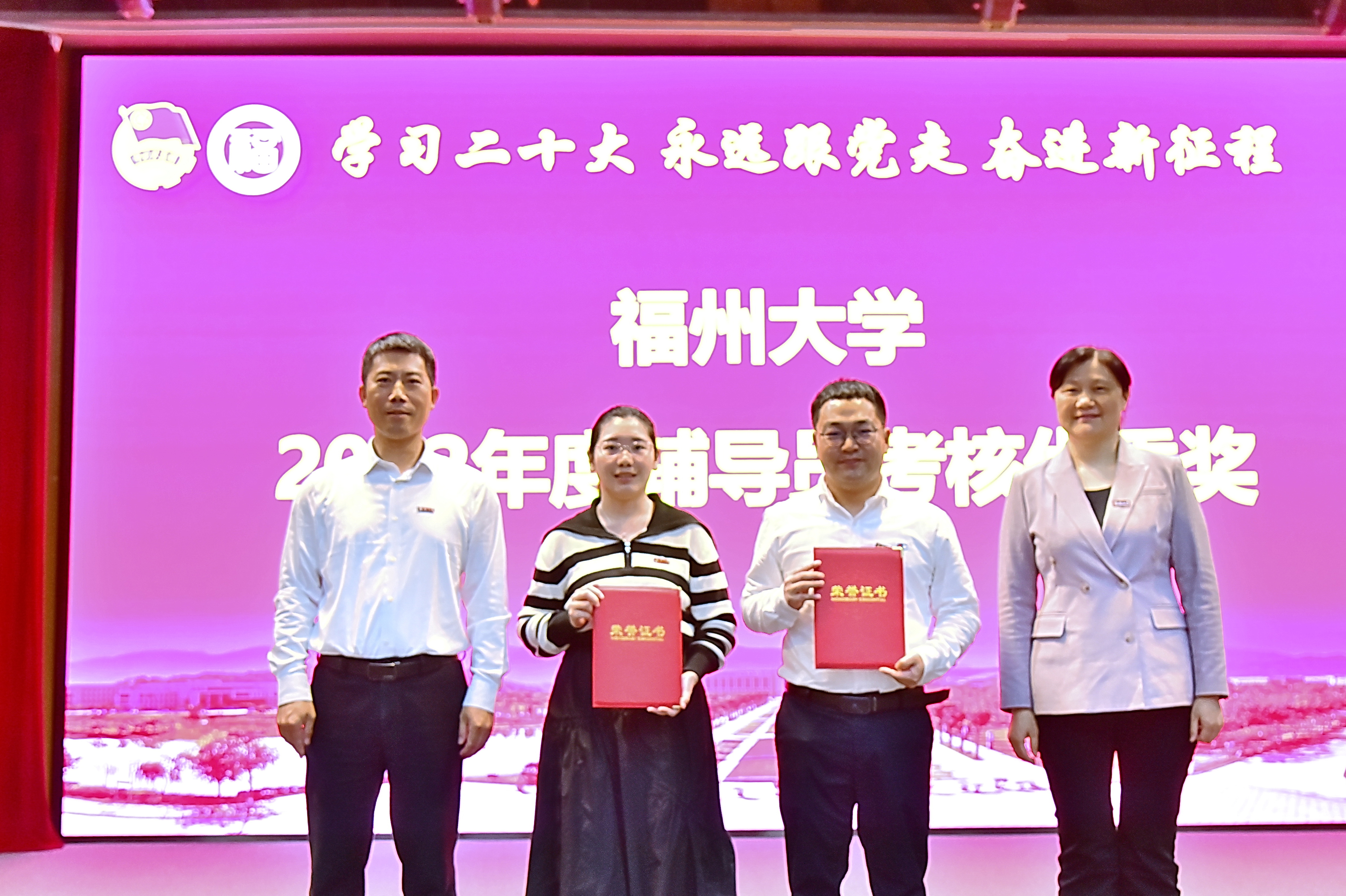 院党委副书记(主持工作)叶青,校人事处处长、学院院长、博士生导师钟舜聪教授为德赢ac米兰官方合作vwin2022年度辅导员考核优秀奖颁奖