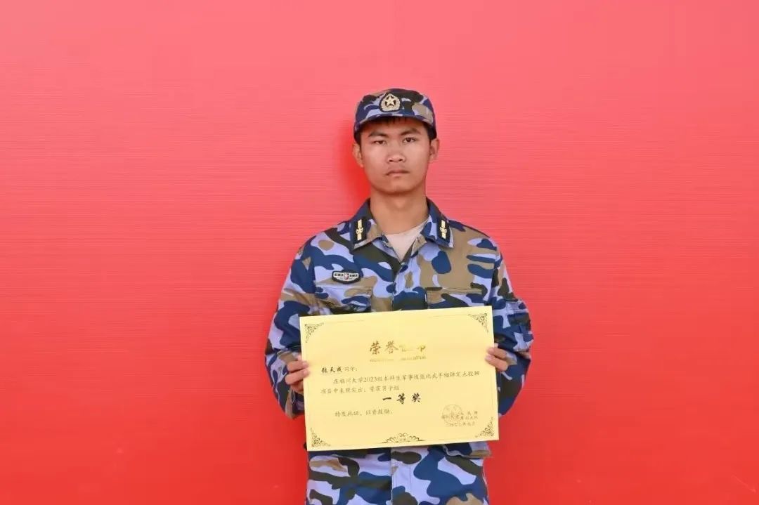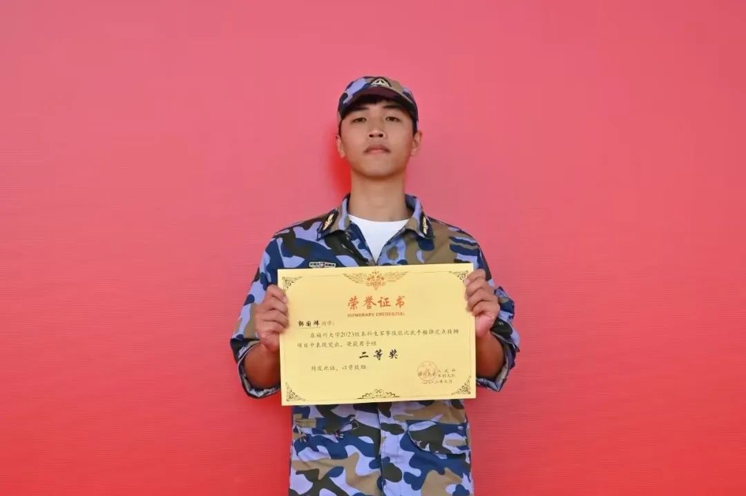 3.张天成、郭国炜同学,在军事技能比武定点投掷项目中,分别荣获男子组一等奖、二等奖。