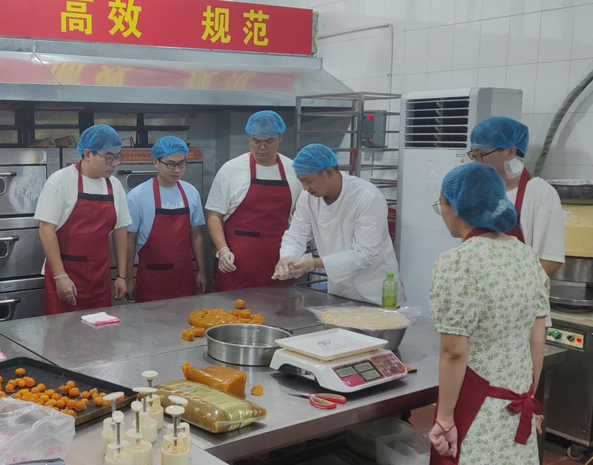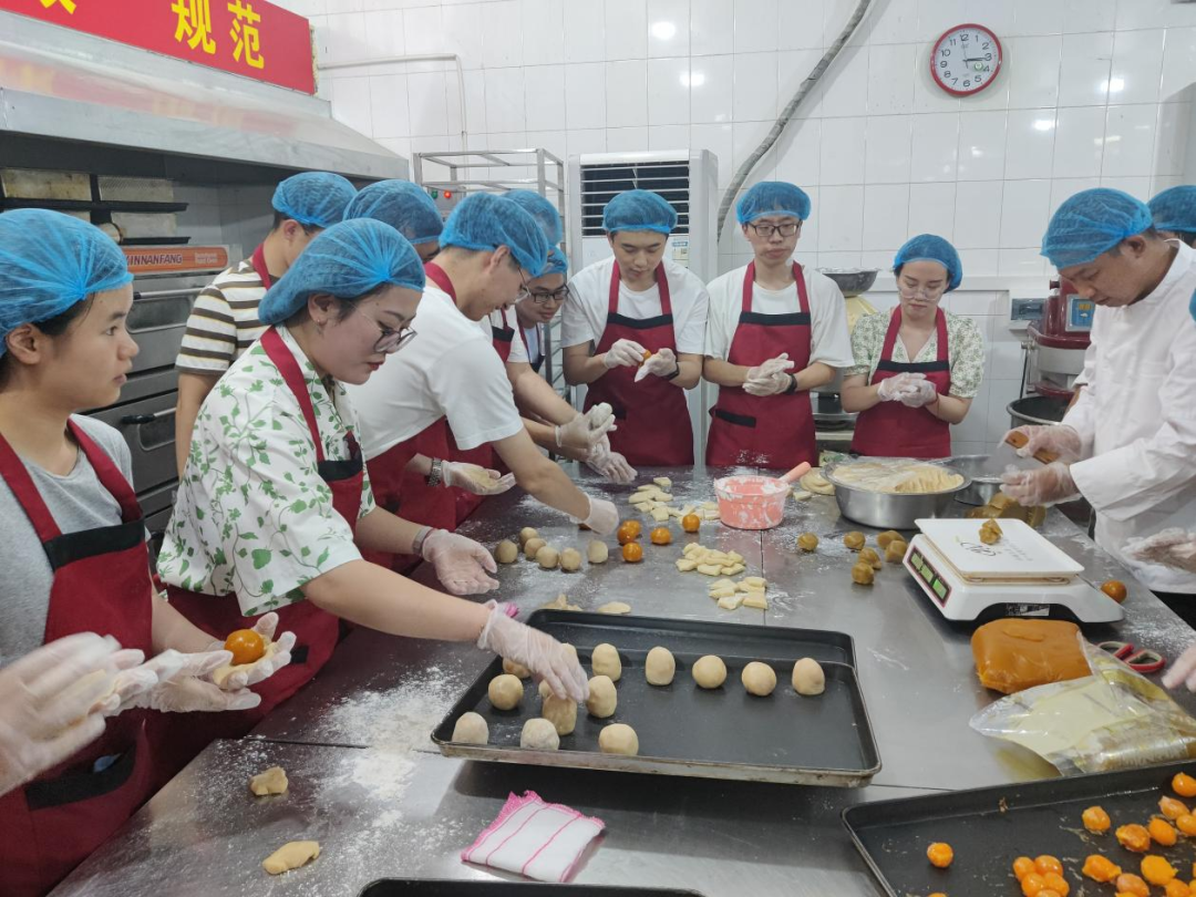 9月16日下午,辅导员查珺带领德赢官网2021级研究生,于德赢ac米兰官方合作vwin旗山校区紫荆园食堂参加由德赢官网与校后勤管理处联合举办的“庆国庆·迎中秋·劳动美——广式月饼制作”主题活动。工作人员带领师生们进行了月饼烘焙的学习。