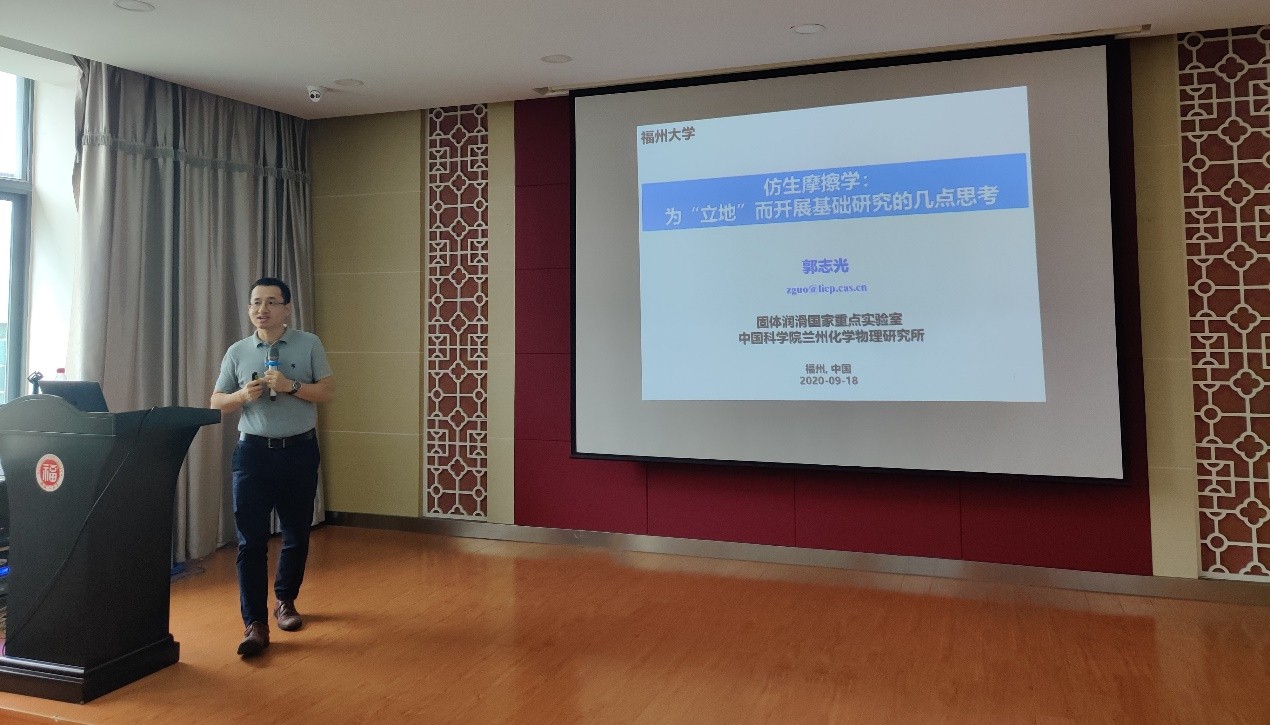 2020年9月18日下午3点,应德赢ac米兰官方合作vwin邀请,中国科学院兰州化学物理研究所固体润滑国家重点实验室研究员,科技部中青年科技创新领军人才,国家优秀青年科学基金获得者郭志光教授,做客德赢ac米兰官方合作vwin,在机械楼北415报告厅为德赢官网师生做了题为“仿生摩擦学:为“立地”而开展基础研究的几点思考”的学术报告。德赢ac米兰官方合作vwin副院长何炳蔚教授以及相关老师出席了本次讲座,全院相关专业研究生也一并参与了此次学术讲座。
