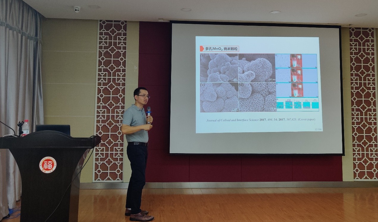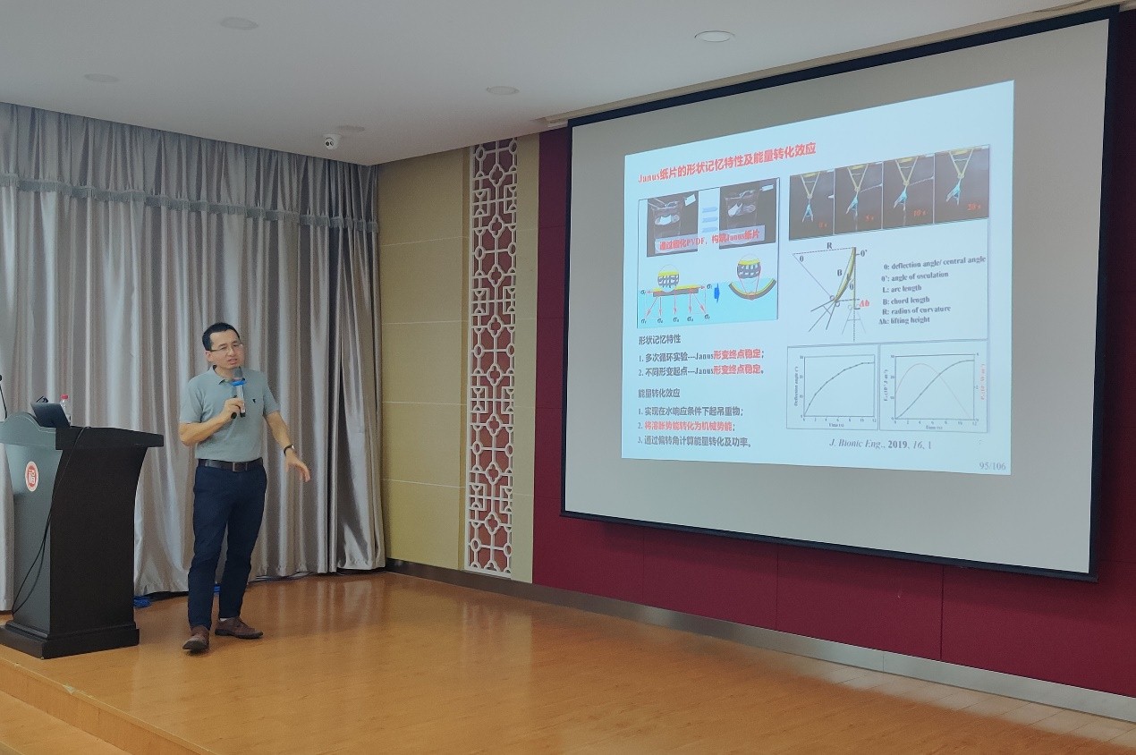 报告伊始,郭教授以疫情期间自身的科研经历告诫大家“生命在于运动,科研在于思考”,希望大家要注意身体健康,养成多思考多动手的科研习惯。随后,郭教授为同学们介绍了研究所的科研情况和个人目前的科研项目进程,他以中国哲学中“合久必分,分久必合”的形象比喻,深入浅出的讲述了油水分离材料和水汽收集材料研究制备方法等科研成果,还以沙漠甲虫水汽收集等生动具体的例子使同学们更加清晰的了解了材料的结构。他还以学生具体论文学术成果为切入,展示了诸多具体的研究数据和图表,用研究图片和视频等为同学们详细的介绍了块体耐磨自洁净材料、超双疏材料、超滑移材料等新型材料的前沿研究成果,拓宽了大家的视野。最后,郭教授从新对象、新方法、新材料及应用三个方面进行了总结,勉励同学们要专心科研,耐得住寂寞和孤独,敢于在研究中提出新的问题并解决问题,努力提高自身学术素养和能力,更好的为行业发展做出贡献。讲座尾声,台下研究生们纷纷结合自己的研究方向,就诸多研究热点问题与郭教授进行了交流,郭教授都耐心的予以解答,并表达了对德赢官网学生的赞赏,现场学术气氛融洽,反响热烈。