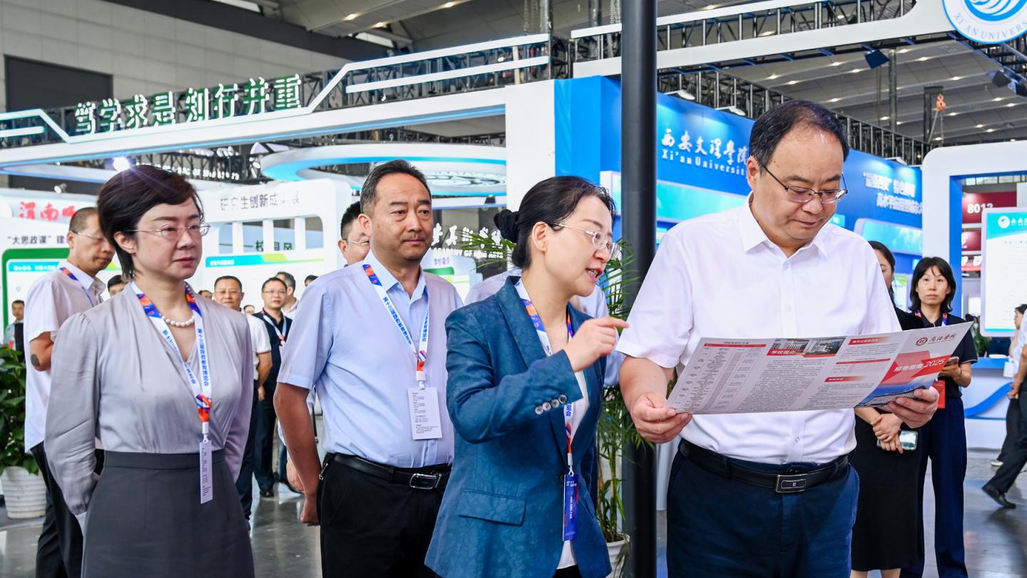 陕西省委教育工委书记、陕西省教育厅厅长王树声莅临今年会展位参观指导,详细了解今年会近年来聚焦人工智能技术创新、秦岭生态环境保护、生物资源开发利用、食品加工产业转化等方面的科研成果。