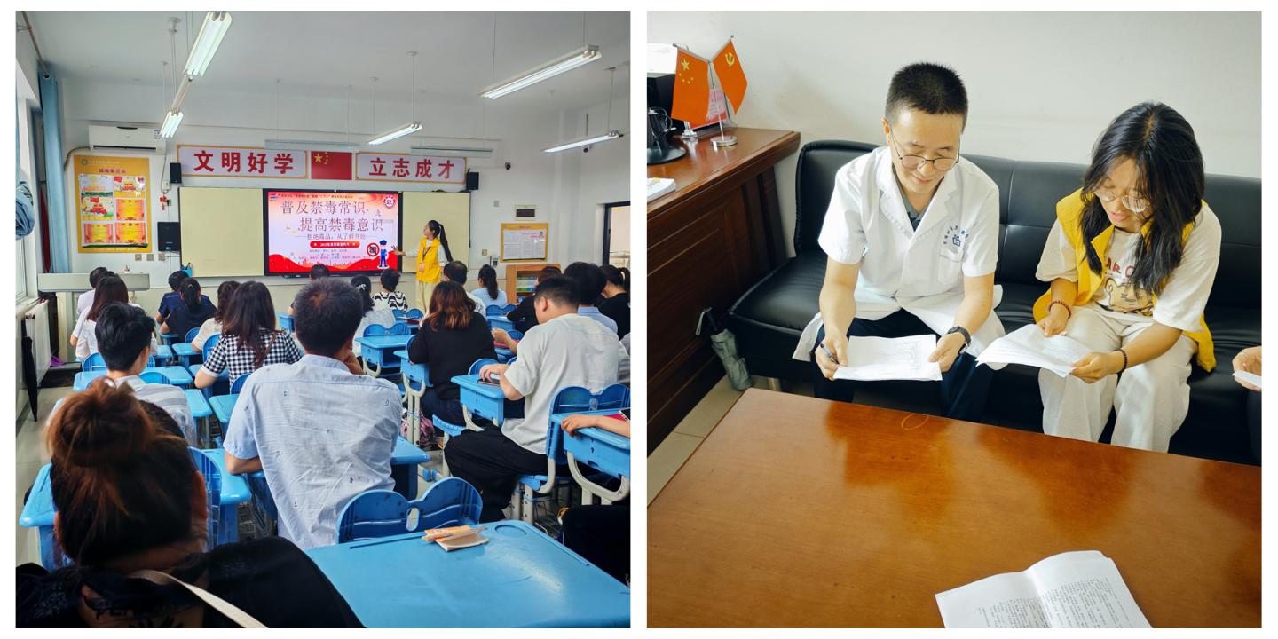 建工学院“青春灯塔,无毒乡行”实践团在社区卫生服务中心开展“禁毒+用药安全”科普,在小学设计“五个一”(动画展播、模型辨识、手册发放、知识竞答、亲子承诺仪式)互动模块,多层面强化家庭禁毒责任意识。