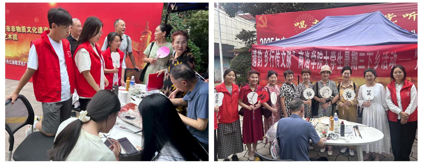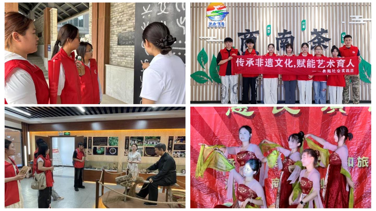 艺术学院多支分队齐发力,构建非遗传承立体网络:“艺溯字源”小分队在仓颉造字遗址创作文创作品;“传承非遗 青春赋彩”实践团学习“试马花棍”舞技、记录绒绣技艺;“传承非遗文化 赋能艺术育人”实践团联合县剧团开展“戏曲进乡村”演出,绘制商南非遗资源图谱。