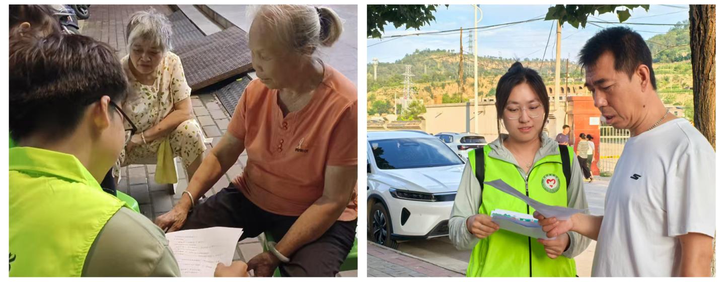 经管学院“青翼护航”实践团在柞水县村镇悬挂横幅、发放手册、现场讲解、开展问卷与访谈,精准掌握群众知识储备与需求,为优化宣传提供数据支撑。