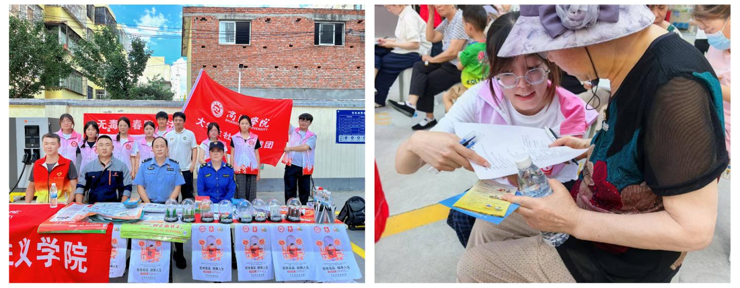 另一方面,各学院实践团联合地方政法部门,深入校园、社区和居民小组,以“微宣讲+法治实践”融合模式开展禁毒宣教,织密全民禁毒防护网,让“健康人生,绿色无毒”理念深入人心。