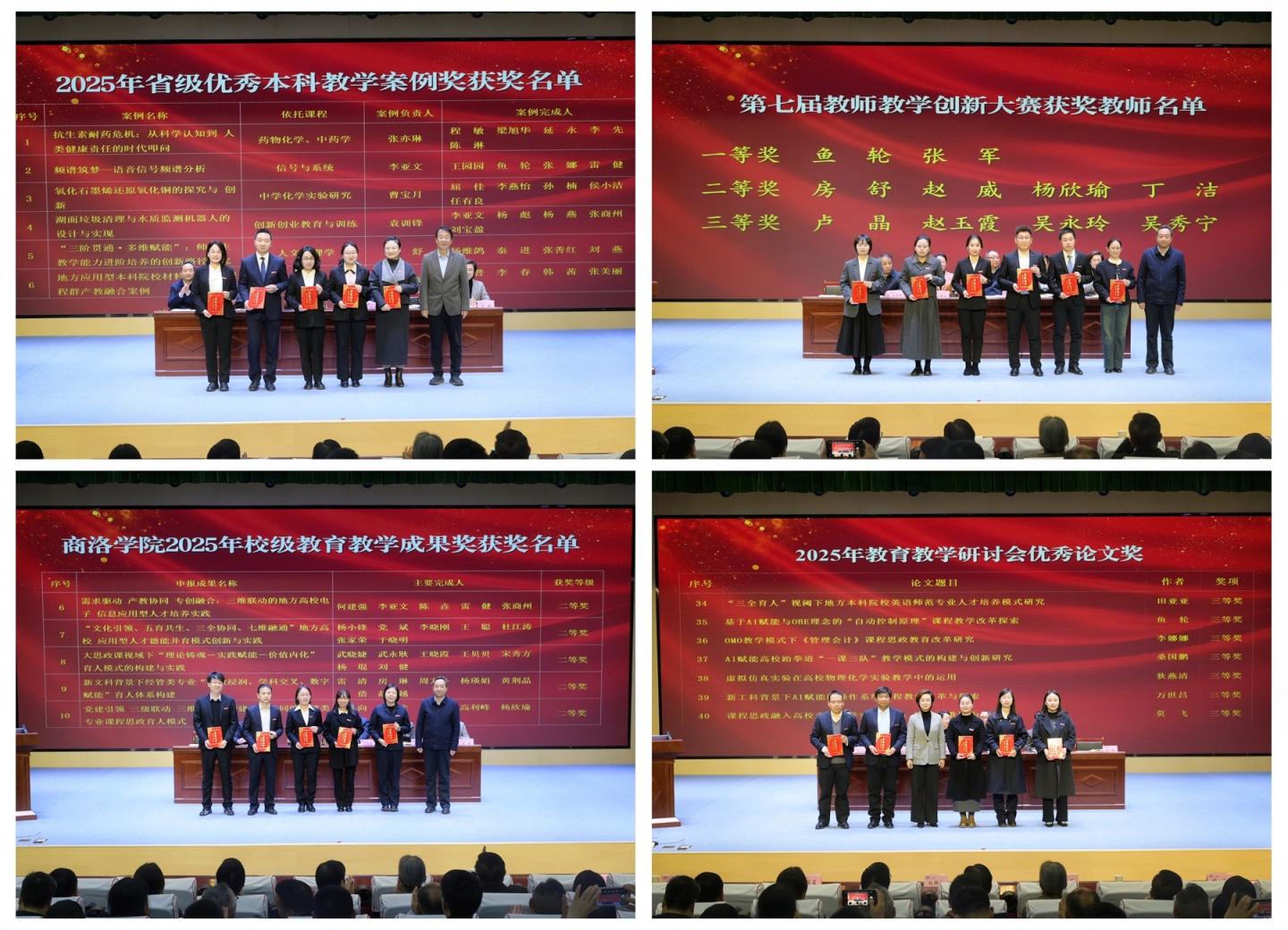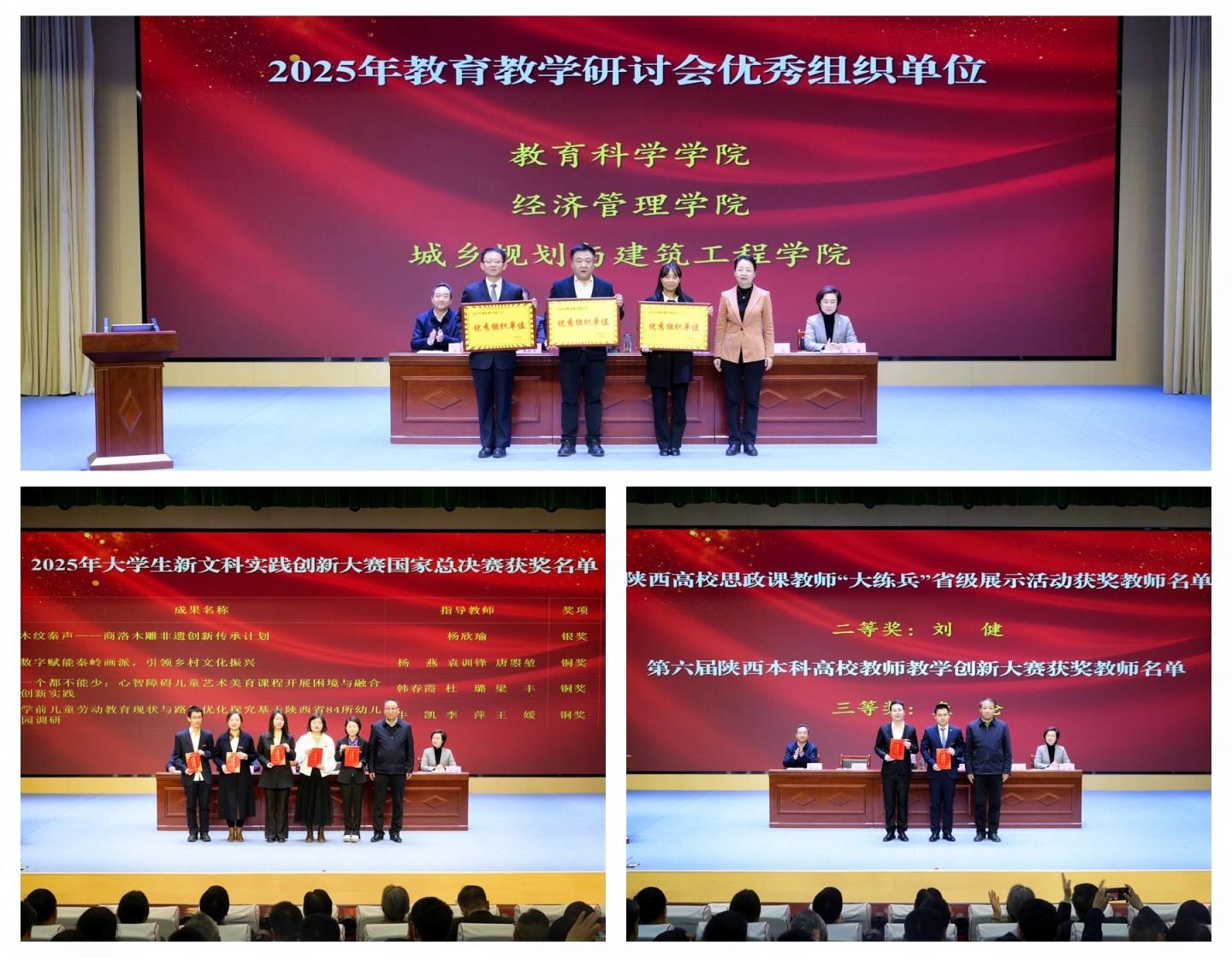 大会表彰了2025年教育教学研讨会优秀论文奖获奖教师、第七届教师教学创新大赛获奖教师、2025年校级教育教学成果奖获奖教师、2025年省级优秀本科教学案例奖获奖教师、陕西高校思政课教师“大练兵”省级展示活动获奖教师、第六届陕西本科高校教师教学创新大赛获奖教师、2025年大学生新文科实践创新大赛国家总决赛获奖项目指导教师及教学研讨会优秀组织单位。