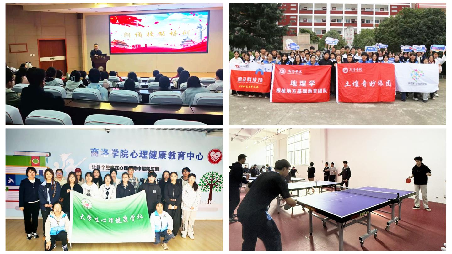 活动期间,各社团立足自身特色,策划开展了内容丰富、形式多样的系列活动。康养社发起“镜头里的中国红,我的国庆记忆”线上vlog征集,鼓励学子以镜头记录家国情怀;球类协会举办乒乓球、羽毛球“新生杯”赛事,在竞技中激扬青春活力;演讲辩论社围绕“异地恋”话题展开思辨,深化情感认知交流;大学生心理健康学社助力“心理中心开放周”,通过沙盘、VR训练、心灵绘画等项目,守护学子心灵健康;丹江文学社组织“行走丹江・文学采风”活动,引领成员于商州秋色中激发创作灵感;图书馆学生读者管理委员会承办“声动十月,礼赞中华”经典诵读大赛,推动红色精神扎根校园;流动科技馆走进柞水县,开展科普活动,搭建高校与基础教育之间的桥梁。