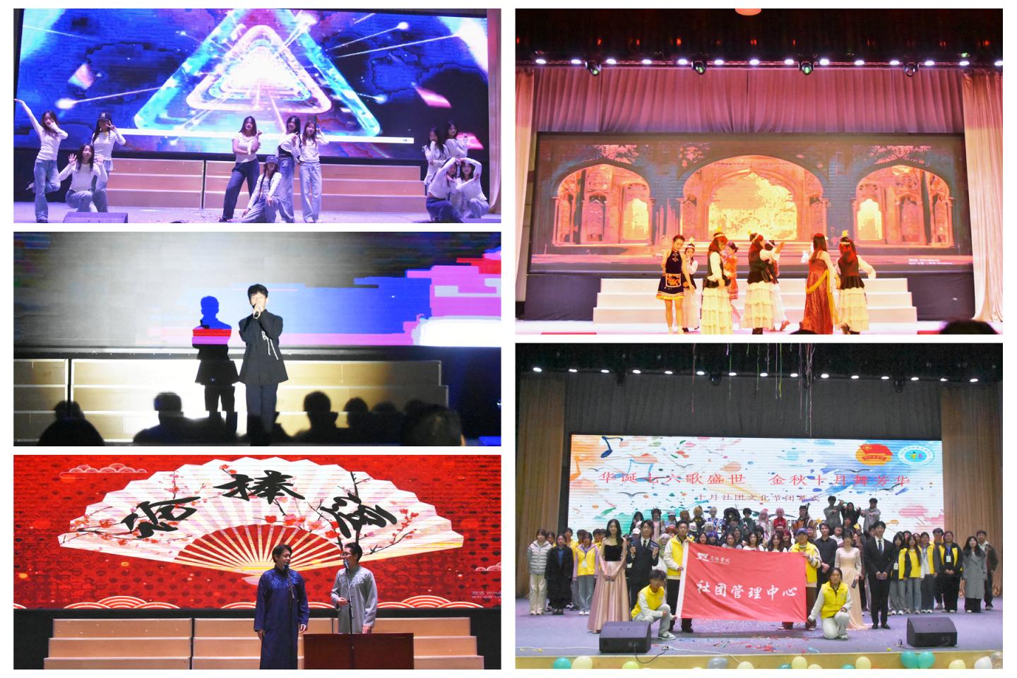 11月5日晚,社团文化节闭幕式在北新街校区大学生活动中心举行。晚会现场气氛热烈,节目精彩不断。“失真”电声乐队以《曹操》《爱人错过》点燃全场,KOD街舞社带来《mantra sushi》等作品,尽显青春张力。范卓钰演唱《多远都要在一起》、大学生艺术团呈现新疆舞《花帽映彩虹》、相声小品社表演《论捧逗》等节目,充分展现了学子们的多才多艺。孟恩托、陈宇轩、王妍洁的歌曲各具风格,魔术社表演惊喜连连。尚漫缘动漫社、社团管理中心、大学生艺术团等社团选送的《一心一教》《美丽的神话》及劲歌热舞等节目轮番上演。杨浩天与罗昱辰的《沉默了太久》、赵中玉的小提琴独奏《轻涟》以及刘欣悦的《夜车》将现场氛围推向高潮,充分彰显了社团文化的多元魅力与蓬勃生机。