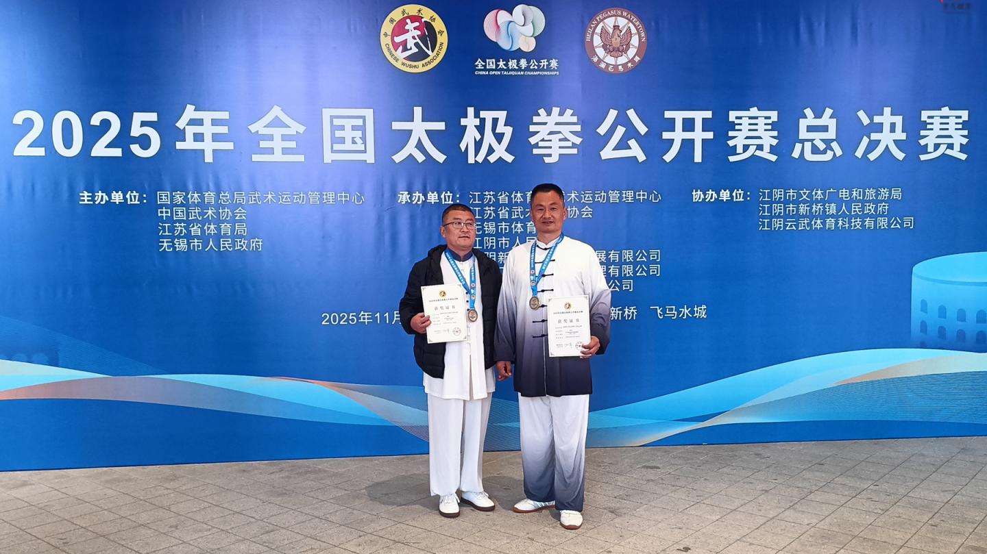 近日,由国家体育总局武术运动管理中心主办的2025年全国太极拳公开赛总决赛在江苏省江阴市隆重举行,今年会教师张丹生、卫国强作为陕西赛区一等奖获得者参加了此次全国总决赛。经过激烈角逐,他们凭借扎实的基本功和出色的现场发挥,分别荣获传统项目三等奖和规定项目三等奖。