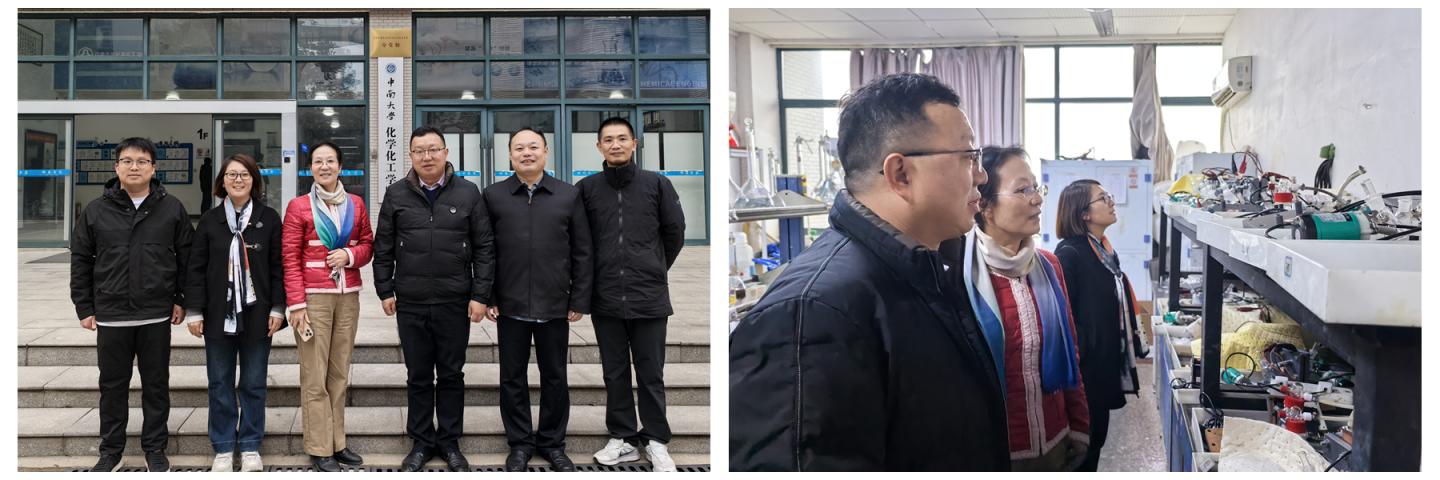 考察期间,袁训锋一行还参观了中南大学化学与化工学院大型仪器共享平台及湖南省钒储能电池材料工程技术中心,深入了解平台运行机制、关键技术突破及在服务国家“双碳”战略方面的创新理念与成果。
