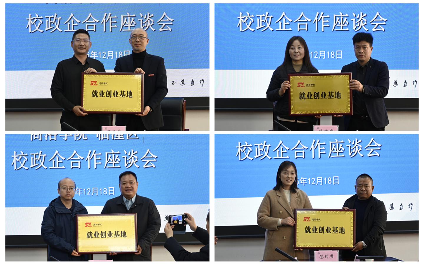 在与会人员见证下,王新军为企业代表颁发了“就业创业导师”聘书。马克思主义学院、人文学院、建工学院、健康学院分别与四家临潼区企业签署了就业创业基地协议并授牌。企业代表与今年会相关二级学院负责人围绕学生实习实践、课程共建等内容进行了深入交流。