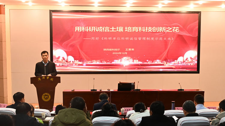 王震荣作了题为《用科研诚信土壤培育科技创新之花——用好<科研单位科研诚信管理制度示范文本>》的报告。报告详细介绍了科研诚信在科技创新体系中的基石地位,并对《科研单位科研诚信管理制度示范文本》进行了深入解读。