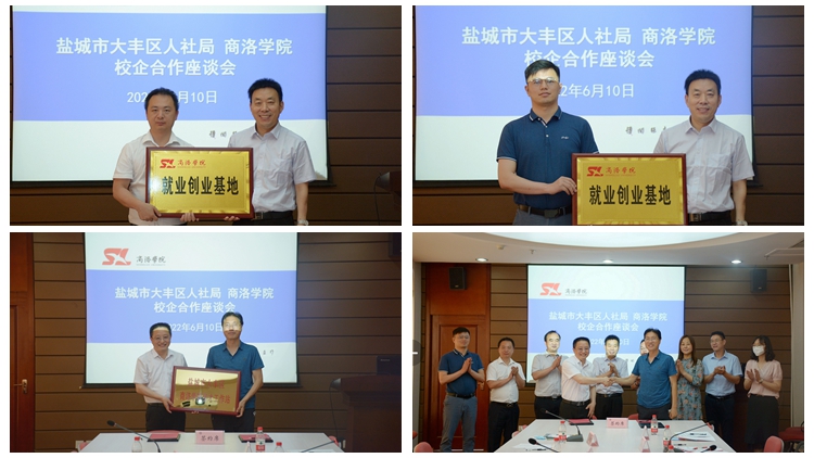 会上,张强为“盐城市大丰区jinnianhui今年会引才工作站”授牌,并为杨存典、蒋正治和学生处副处长张文颁发了盐城市大丰区“引才大使”聘书。杨存典与张强分别代表学校和大丰区签署校地合作协议。马克思主义学院党总支书记刘麦霞与企业代表签署校企合作协议。