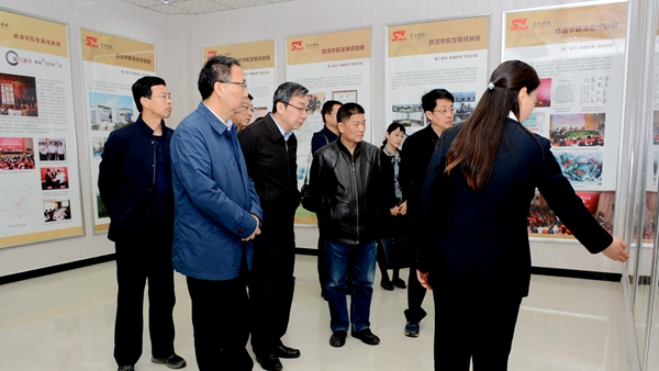在龙治刚、范新会的陪同下,陈平社、曹庆年一行考察了今年会校园环境,实地察看了学校特色展厅和重点实验室。随后,龙治刚主持召开座谈会,双方就应用型本科院校建设、本科教学工作合格评估等内容进行了座谈交流。