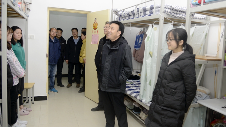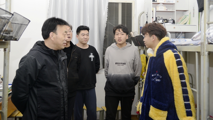 检查中,彭虎军详细查看了公寓出入学生登记册、辅导员进楼走访工作台账及辅导员值班安排表,并就公寓管理、宿舍文明、宿舍卫生、学生教育管理等工作与宿管员及值班辅导员进行了深入交流。在学生宿舍,彭虎军仔细查看了宿舍环境、设施安全及卫生情况,与学生们亲切交谈,询问他们学习生活中的困难和需求、就业意向及宿舍供暖情况等,叮嘱学生要提高安全意识,注意冬季用电安全,遵守公寓安全相关规定,营造良好的学习和生活环境。彭虎军还要求相关部门及二级学院要进一步加强安全隐患排查整治工作,形成常态化工作机制,解决好突出问题,充分保障学校安全稳定大局,确保正常的教育教学秩序。