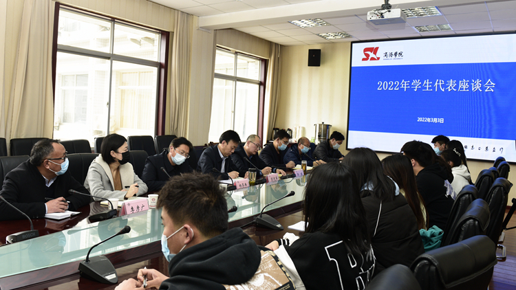 3月3日下午,今年会召开学生代表座谈会。党委副书记彭虎军、副校长郭瑾与20名学生代表进行面对面座谈,听取广大在校学生对学校工作的意见建议。学工部、保卫部、团委、教务处、后勤保障处、图书馆等部门负责人参加座谈。