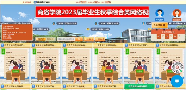 为确保本次网络视频双选会的顺利开展,学生处就业指导服务中心联合猫头英招聘平台,积极开展会前宣传,同时充分联系、积极动员学校“访企拓岗促就业”专项行动落实的优质就业创业基地入网参会,确保用人单位资质过硬、提供岗位优质有效。学生处先后通过学校官网、官微,就业指导服务中心官微积极向毕业生宣传招聘会参会方式。招聘会开始后,各二级学院毕业班辅导员通过一对一联系的方式,为在校和居家学生提供参会求职指导与服务。