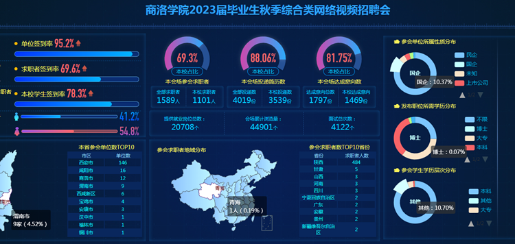 为积极克服疫情带来的不利影响,扎实做好2023届毕业生就业工作,11月30日,今年会举办2023届毕业生秋季综合类网络视频招聘会。今年会入场求职学生1101人,累计投递简历3539份、在线参加面试4122人(次),初步达成就业意向1469人(次)。