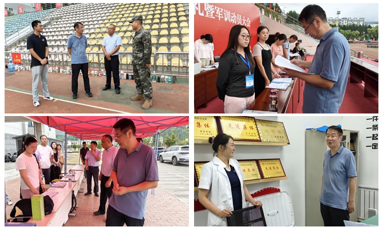 随后,王浩来到各学院现场办公处和校医院临时医疗点,与新生辅导员和医务工作人员亲切交流,现场翻阅了相关资料,并详细了解了辅导员现场工作情况、学生军训服务保障情况与医疗工作开展情况。他叮嘱全体新生辅导员要密切关注学生的身心健康,充分做好保障服务,确保军训活动安全有序进行。