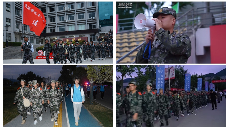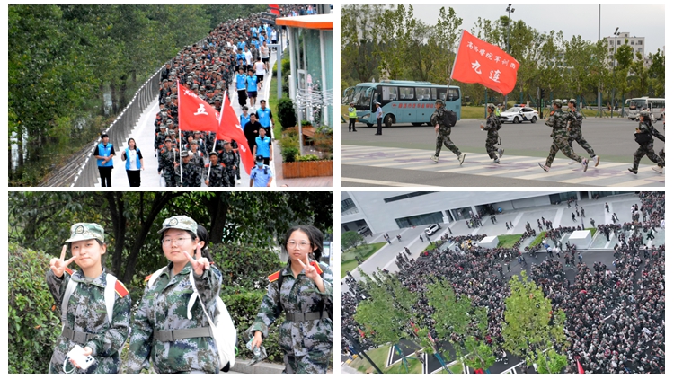 早上5点30分,晨光熹微,丹江校区全体参训新生身着迷彩服,精神抖擞,整装待发。6点整,随着一声“出发”令下,铿锵有力的号令响彻校园,大家步伐整齐,沿着丹江河畔行走至帆船公园,与由北新街校区出发的新生在此顺利汇合。全体参训新生行进至终点秦岭博物馆北侧广场,再沿丹江公园返回,全程15公里。在6个小时的行军过程中,新生们队列齐整、秩序井然,充分展示出军事技能训练的成果和今年会学子乐观向上、勇于挑战、吃苦耐劳的精神风貌。队伍行进过程不时引来过往市民的注目和称赞。