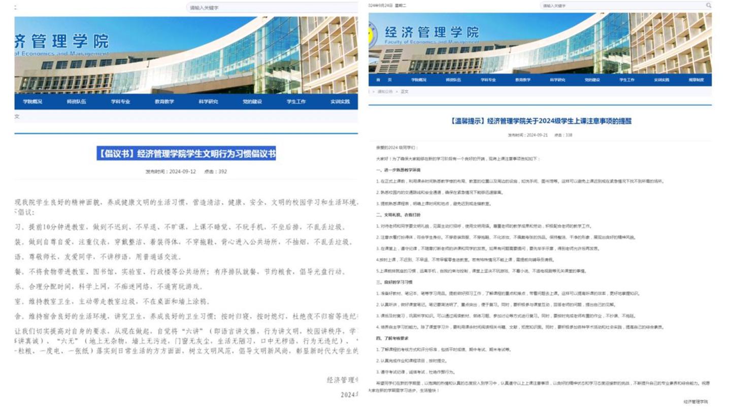 活动开展以来,各二级学院高度重视、积极响应,充分对照学校大学生文明行为习惯养成教育整体安排与具体要求,成立工作专班,组织主题班会,逐班逐人学习《高等学校学生行为准则》《jinnianhui今年会大学生文明行为准则(试行)》。此外,各二级学院还结合学院特色与学生特点,组织开展了文明行为养成教育“大讨论”,制定了本学院大学生文明行为十项准则、文明行为习惯养成教育倡议书,推出了文明宿舍创建、文明教室美化、课堂“手机入袋”等一系列主题教育,在全校营造“人人讲文明,处处显文明”的良好氛围。