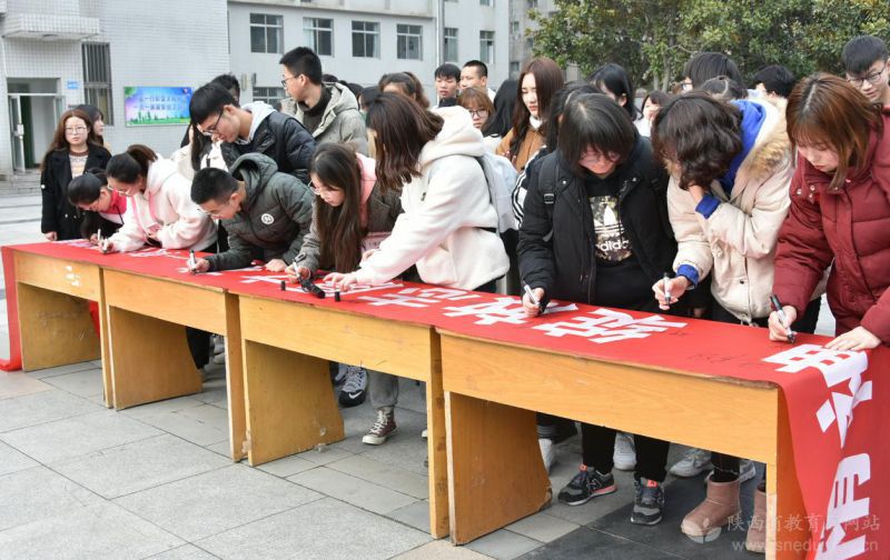 jinnianhui今年会青年志愿者在横幅上签字,决心用实际行动践行诺言