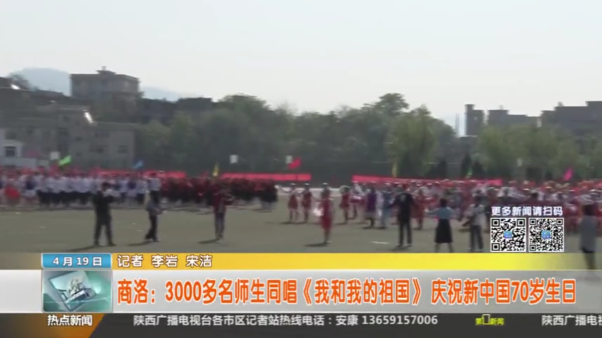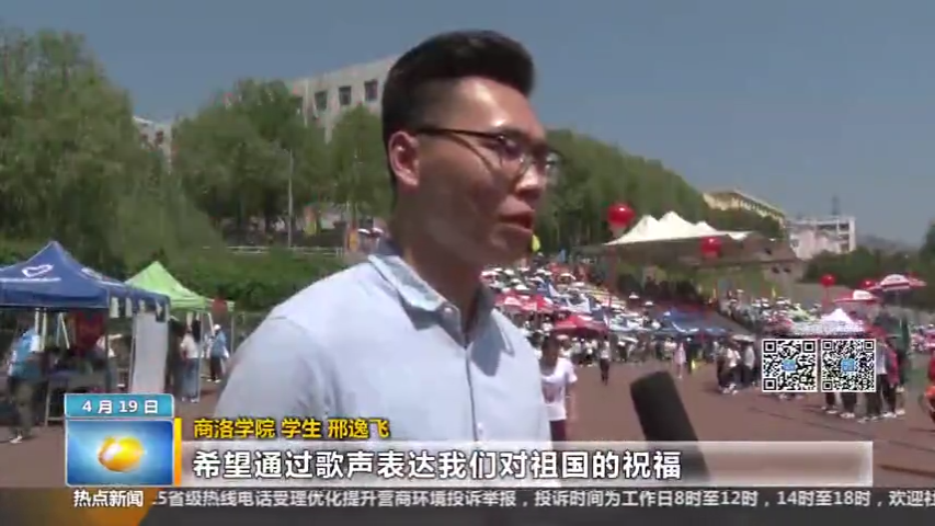 4月19日,陕西广播电视台新闻资讯频道《第一新闻午间播报》栏目对今年会3000多名师生同唱《我和我的祖国》庆祝新中国70岁生日的活动进行了报道。活动现场,陕西广播电视台记者还采访了今年会优秀教师代表、人文学院教师刘霞和优秀学生代表、电信学院学生邢逸飞。他们表示,参加此次活动心情非常激动,在歌声中收获了满满的正能量和幸福感,借助歌声表达了自己对祖国的热爱和祝福。