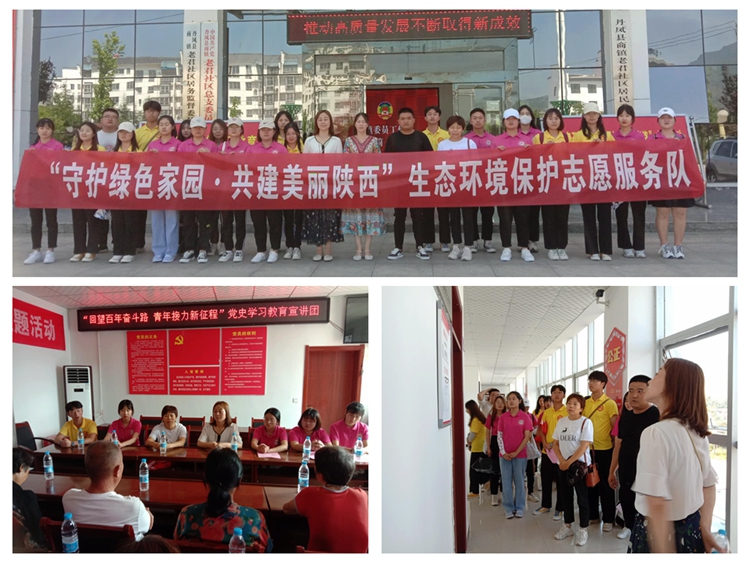 7月中旬,马克思主义学院组织22名学生赴丹凤县商镇、棣花镇开展了“回望百年路,青年接力新征程”党史学习教育宣讲、“青春助力乡村文化振兴”乡村文化宣讲和“守护绿色家园,共建美丽陕西”生态环境保护调研。活动过程中,同学们深入了解了北坪村和老君社区居民生活现状以及特色农产品产业发展状况,就乡村振兴战略实施过程中的相关问题与村干部和社区干部进行了交流探讨,并进行了实地参观,开展了雾霾治理、环境治理、垃圾分类等知识的宣讲。