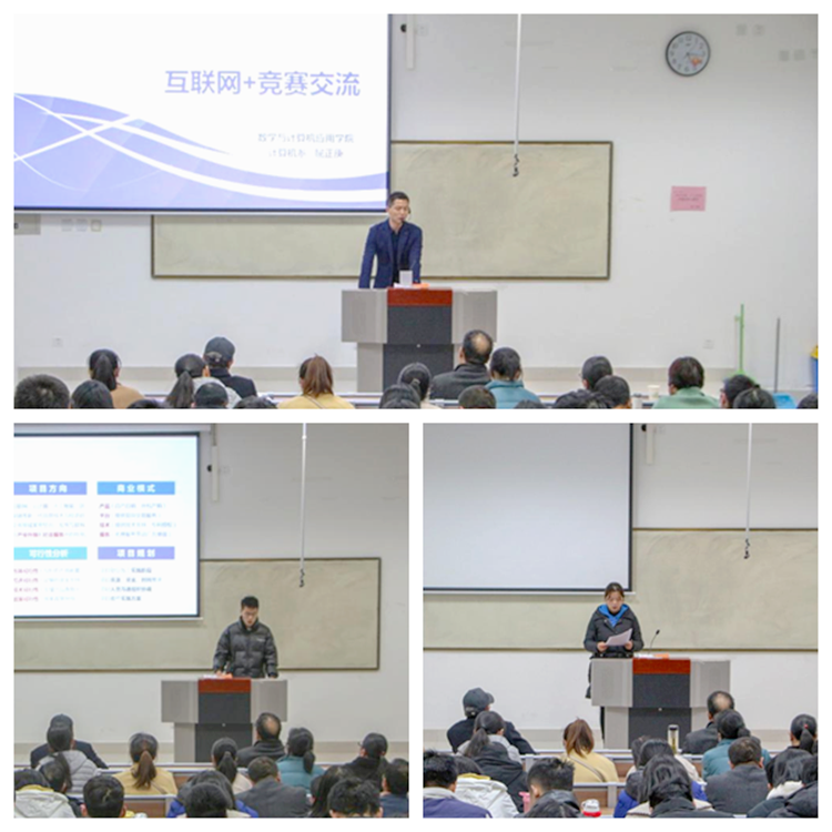 会上,第七届“互联网+”大赛陕西赛区金奖获奖团队指导教师屈正庚分享了自己指导“互联网+”大赛的经验,介绍了如何“选项目、定团队”“做计划、写摘要”“理逻辑、备路演”,及撰写创业计划书、制作路演PPT和一分钟视频、路演答辩的方法和技巧;第七届“互联网+”大赛陕西赛区金奖获奖团队负责人、数计学院学生刘旭,银奖获奖团队负责人、数计学院学生刘垚分别从大赛项目选题、团队组建、产品研发、项目推广、项目实施和打磨、备赛技巧等方面分享了团队参赛经验,及团队在备赛过程中同心协力、攻坚克难的奋斗历程,鼓励同学们积极参与到“互联网+”大赛中,勇于探索,积极进取,在比赛中增长智慧才干,锤炼意志品质,用青春书写无愧于时代的华彩篇章。