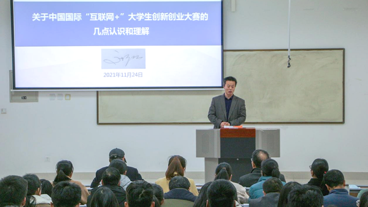 高扩昌作了题为《关于中国国际“互联网+”大学生创新创业大赛的几点认识和理解》的专题报告,对“互联网+”大赛政策、学科前沿及如何备赛进行了详细的解读,介绍了今年会历年参赛情况,分享了自己在组织参与“互联网+”大赛过程中的心得体会与宝贵经验。