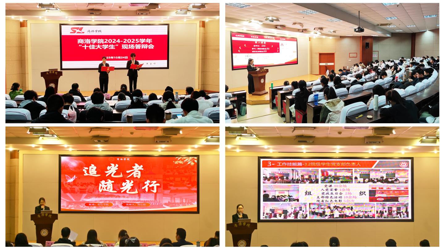 为充分发挥榜样示范引领作用,10月24日下午,学工部组织开展了2024-2025学年“十佳大学生”现场答辩会。学工部、团委、教务处、保卫部、后勤保障处相关负责人及各二级学院师生代表共计140余人观摩了答辩会。