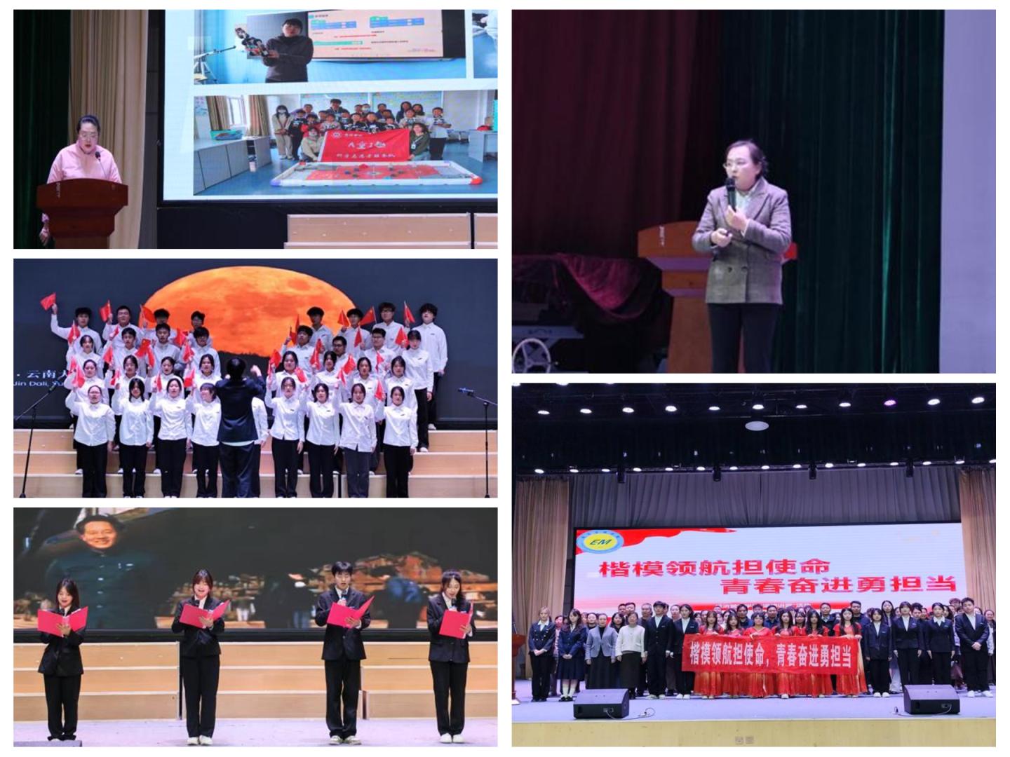 活动在舞蹈《如愿》中拉开序幕,优美的舞姿传递出对先辈奋斗的感恩与对美好未来的向往,引导观众深入思考“楷模”与“担当”的深刻内涵。随后,诗朗诵《青春向楷模,吾辈勇担当》与演讲《擎起楷模旗帜,书写青春华章》,热情歌颂了道德模范们坚定的理想信念和不懈的奋斗精神。在熟悉的旋律中,全体与会人员齐声高唱《我爱你中国》,激昂的歌声响彻会场,澎湃的爱国情怀激荡在每个人心中。