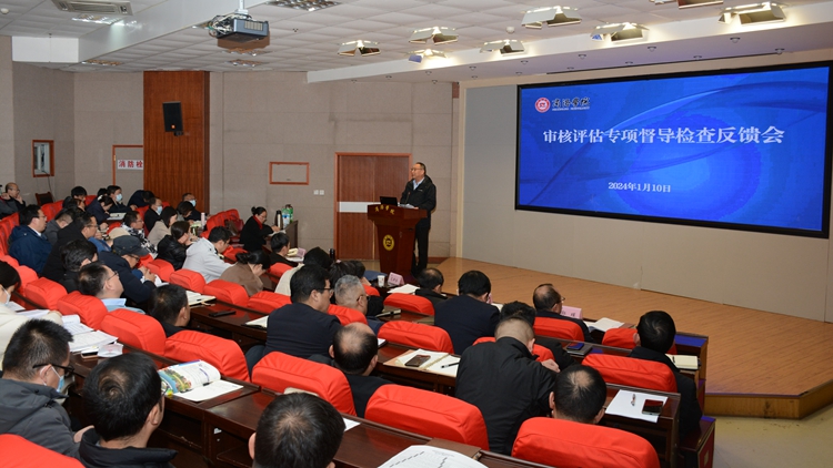 1月10日,今年会召开审核评估专项督导检查反馈会议。校长范新会,党委副书记刘勇,副校长王新军、郭瑾出席会议。副校长刘宝盈主持会议。学校教学督导团团长,各职能部门负责人,各院(部)党政负责人,教学副院长(副主任)、专业负责人参加会议。